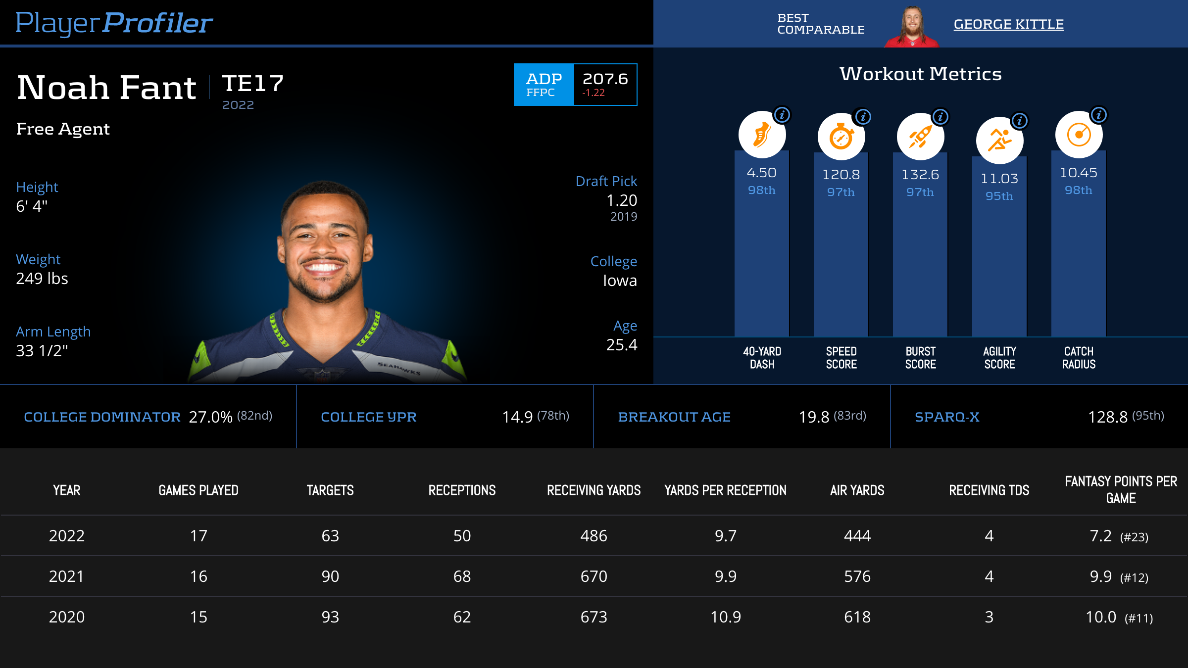 Nfl And Pff Player Stats For Seattle Seahawks Te Noah Fant On Pro Football Focus.